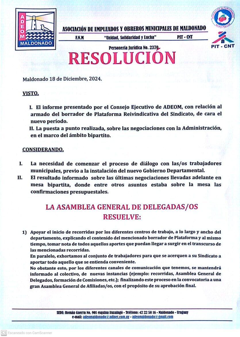 ADEOM MALDONADO RECUERDA: Todo aquello que no sea otorgado en el marco de la Negociación Colectiva, peligra su continuidad en un nuevo período de Gobierno.